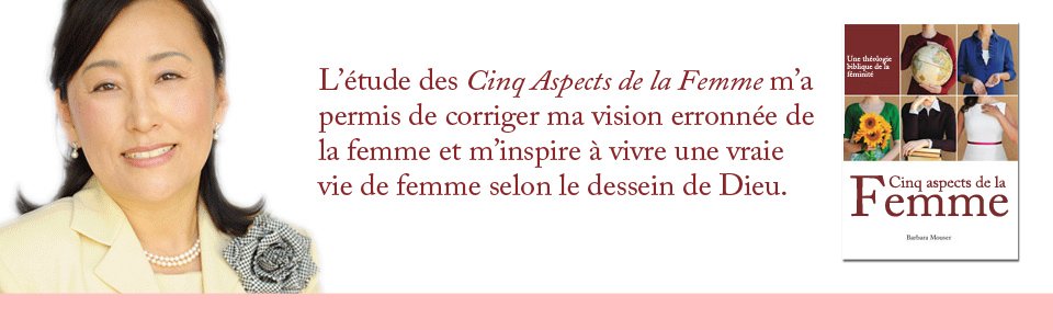 L’étude Cinq aspects de la femme donne une vision globale de la féminité dans la Bible. C’est un cours biblique divisé en 23 leçons, organisé autour de 5 aspects. Chaque aspect est présenté en 3 volets : tel que crée par Dieu, tel qu’affecté par le péché, et tel que restauré en Christ et mis en pratique dans la vie d’une chrétienne.